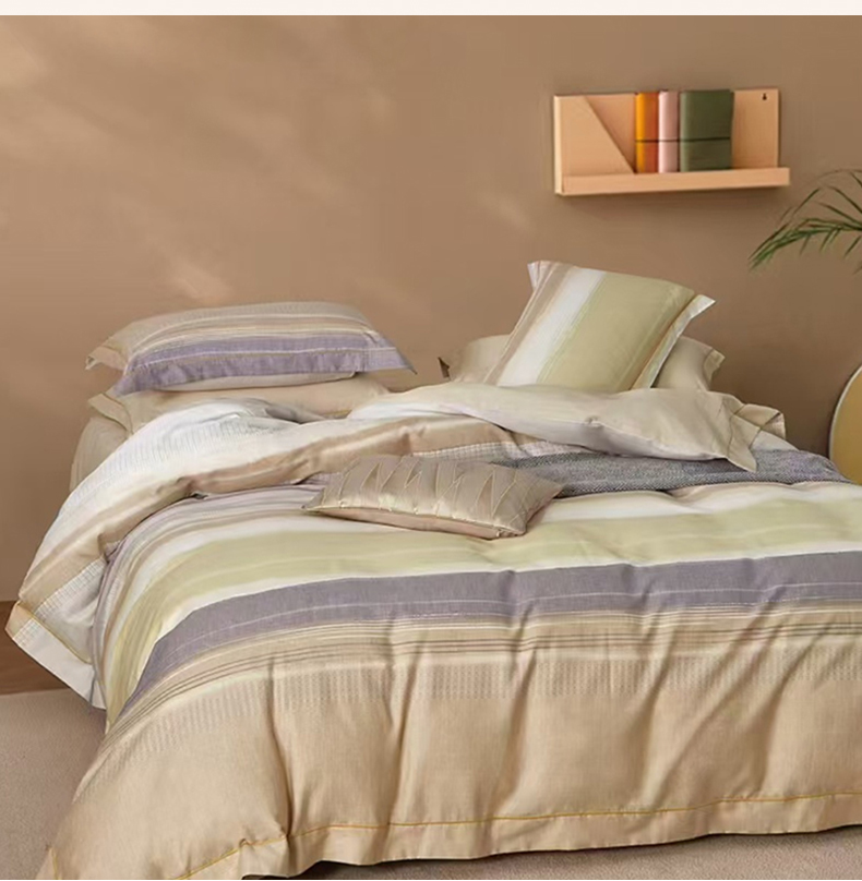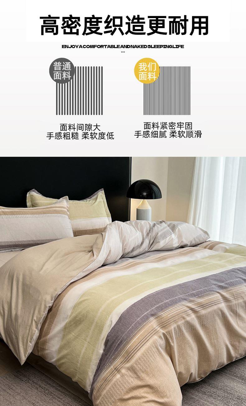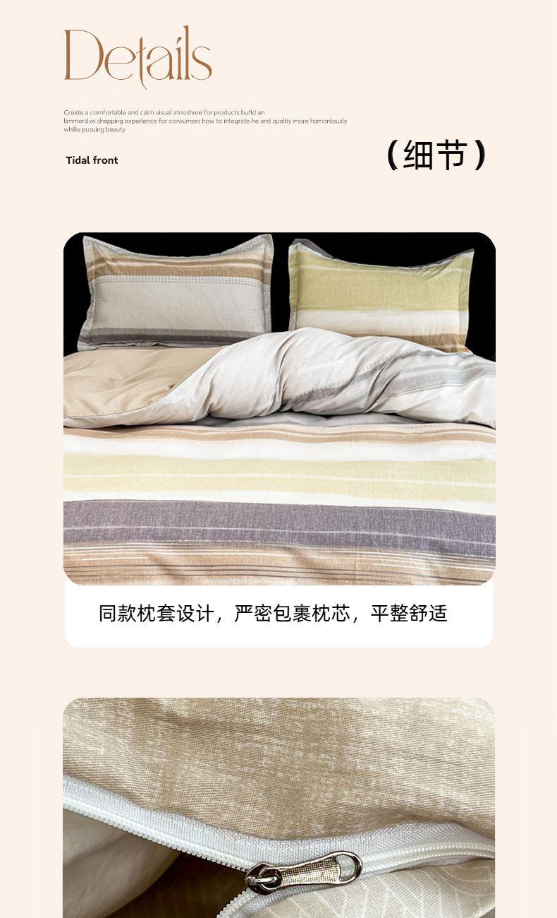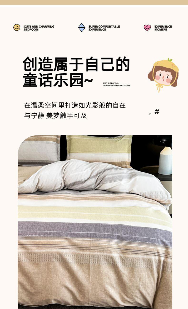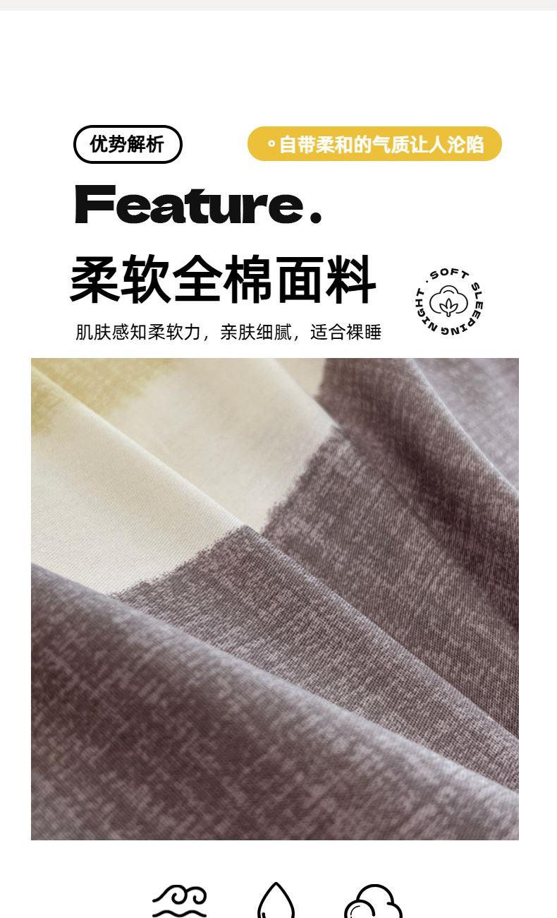 被套:200*230cm 床单:230*245cm 枕套:48*74cm*2 面料:全棉 执行标准:GB/T22796-2021 安全类别:GB18401-2010 B类 1.精选=优质全棉面料,以阳光般的天然柔润质感,打造会呼吸的睡眠体验。采用高支高密精梳工艺,触感柔软细腻却不失挺括,面料经纬交织间形成天然透气孔洞,睡眠时能自动调节湿度,保持肌肤整夜干爽舒适。