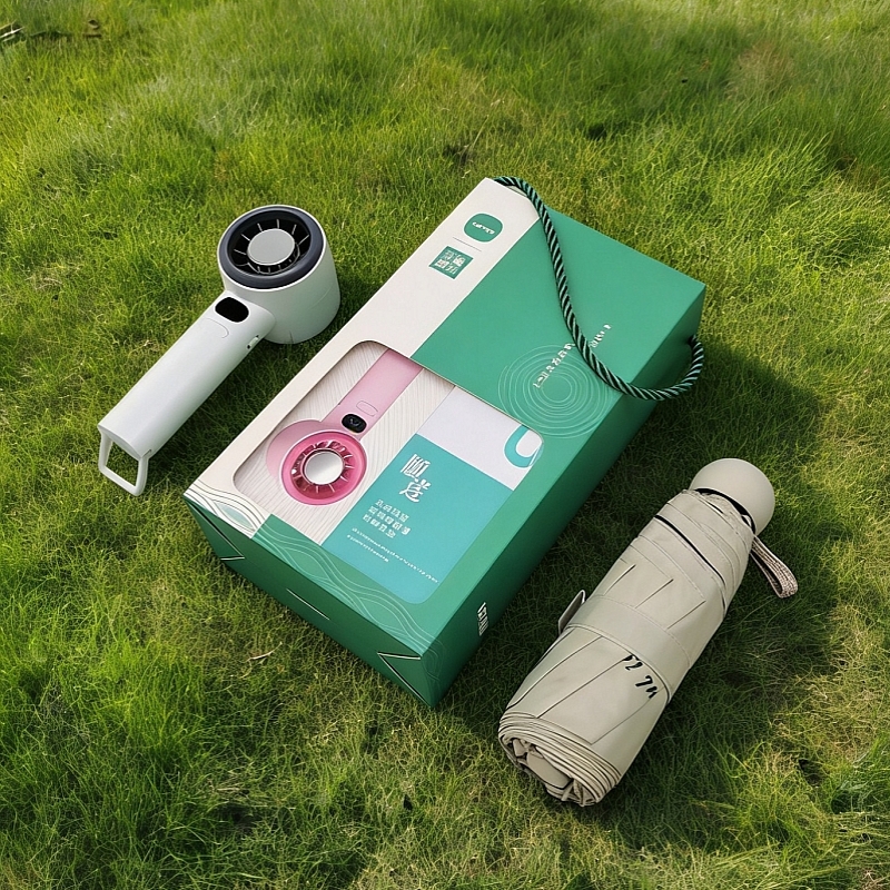 型号:S2F6 产品内容: 1、五折八骨晴雨伞(大伞)×1 伞下直径95CM 合金纤维骨架 黑胶面料 2、数显手持风扇*1 1200毫安锂电池 USB接口 (续航时间120分钟左右 199挡风力可调) 礼盒规格:25*14*7CM 五折八骨大号晴雨伞 口袋伞 标准伞尺寸 黑胶隔热 数显风扇 1200毫安 199档可调 长续航 靓丽外观