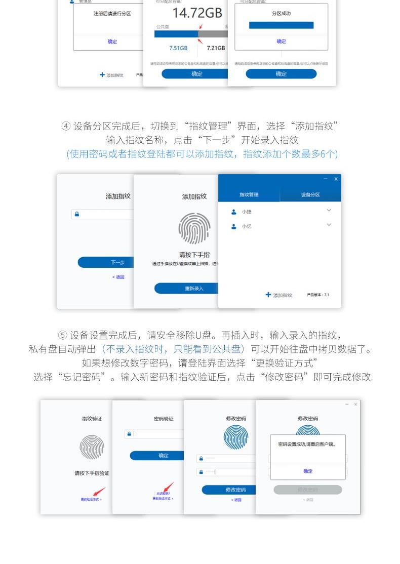 Type-C/USB3.1双接口 采用双接口传输 USB3.0高速传输 一键识别、指纹加密 自由分区、广泛兼容 产品尺寸:58.5*20.4*8.4mm 包装尺寸:113*100*10mm 单品重量:17g