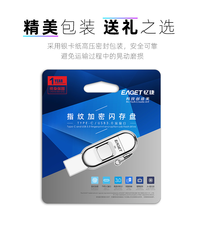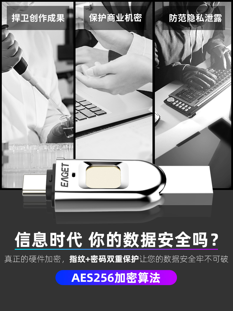 (EAGET)忆捷HF-C01指纹加密手机U盘32G