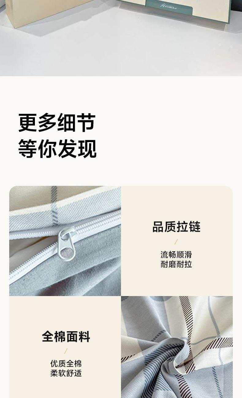 3.精致工艺 : 做工上内缝拷边,做工细致,四角绑带,更好的固定被芯;枕套采用口袋式设计风格,美观大气简约时尚;