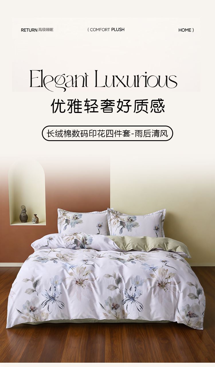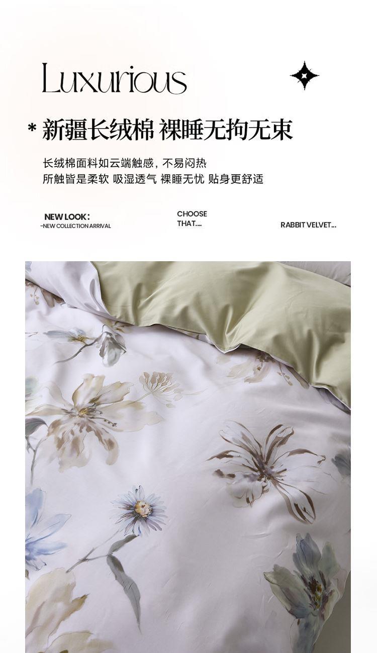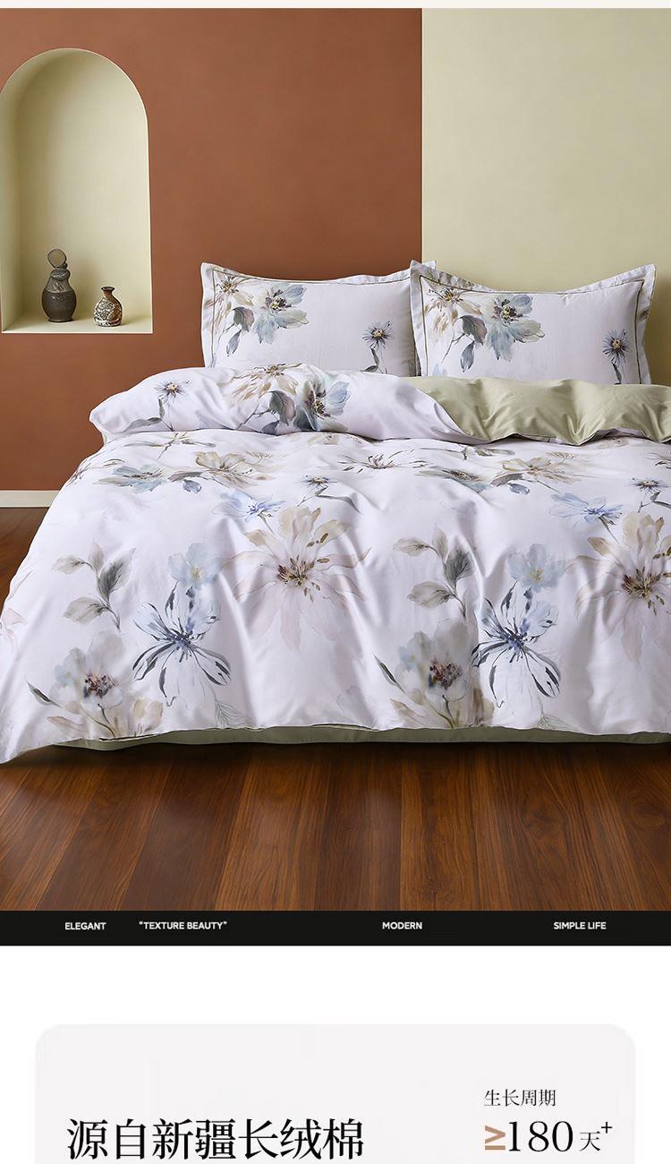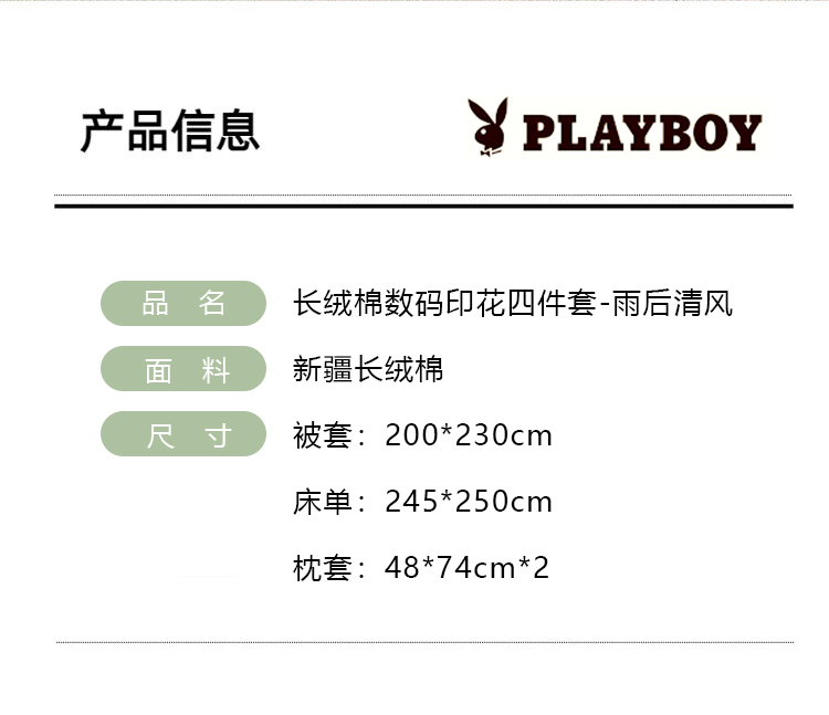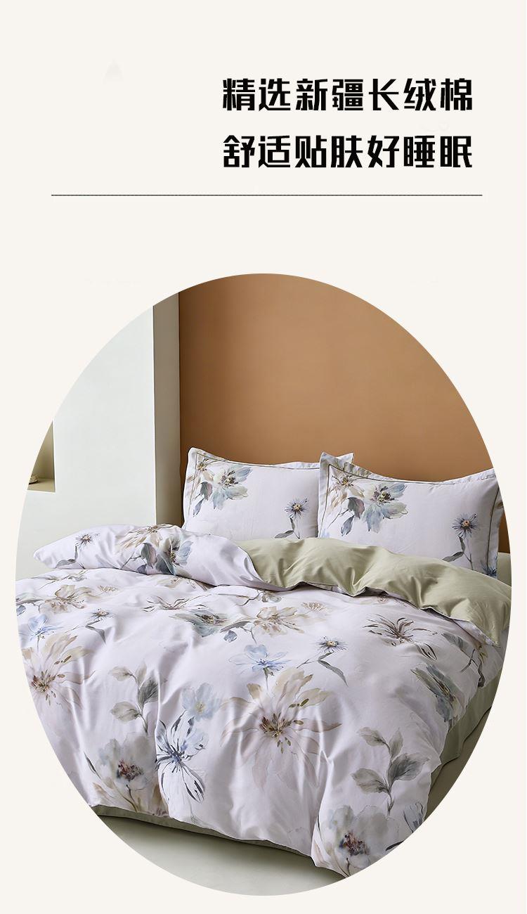 被套:200*230cm 床单:245*250cm 枕套:48*74cm*2 面料:新疆长绒棉(棉) 执行标准:GB/T22796-2021 安全类别:GB18401-2010 B类 1.精选新疆长绒棉面料,色彩艳丽,大方。采用高纱织纯棉面料,透气性很好,舒适而不失档次。 2.数码印花饱满逼真,色彩丰富,给您带来一场全新的视觉盛宴。